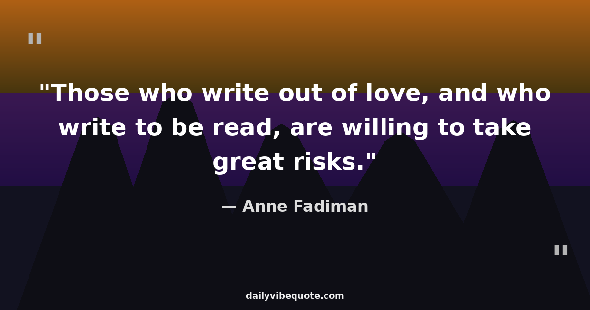 "Those who write out of love, and who write to be read, are willing to take great risks."