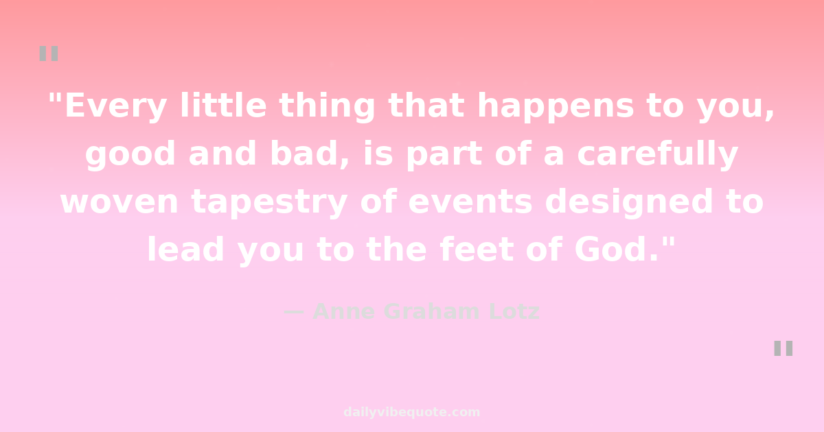 "Every little thing that happens to you, good and bad, is part of a carefully woven tapestry of events designed to lead you to the feet of God."