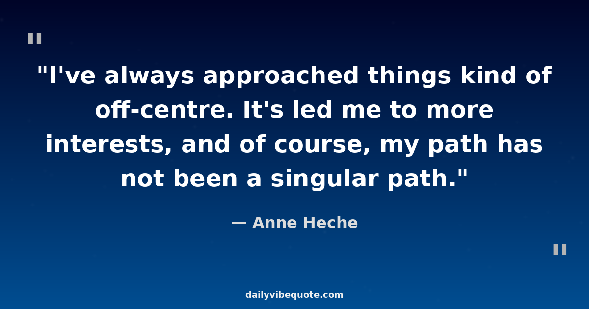 "I've always approached things kind of off-centre. It's led me to more interests, and of course, my path has not been a singular path."