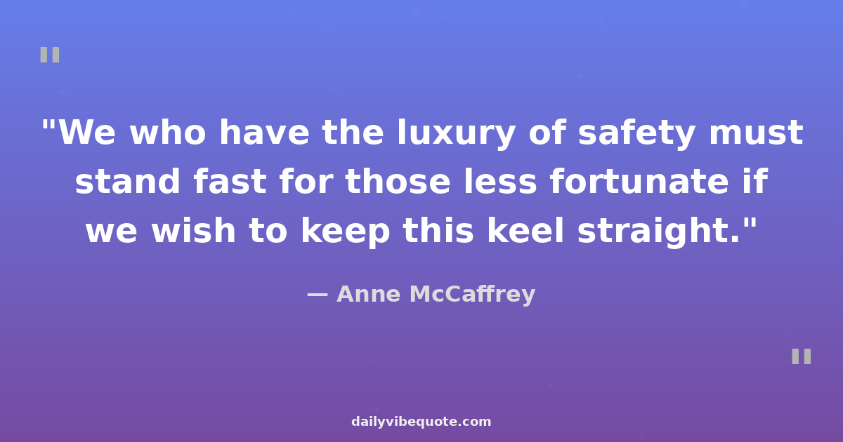 "We who have the luxury of safety must stand fast for those less fortunate if we wish to keep this keel straight."