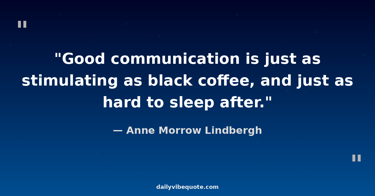 "Good communication is just as stimulating as black coffee, and just as hard to sleep after."