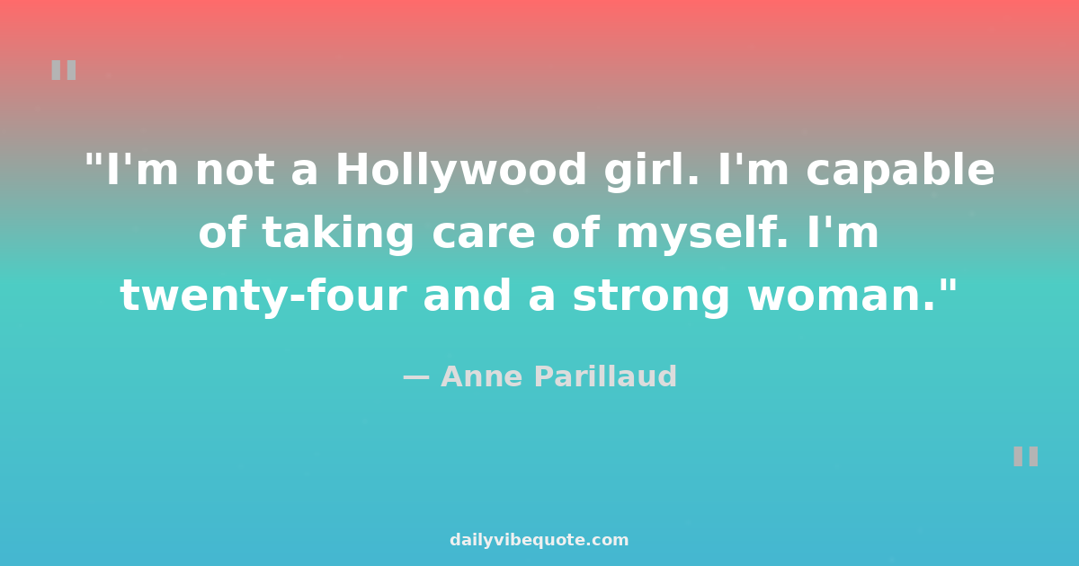 "I'm not a Hollywood girl. I'm capable of taking care of myself. I'm twenty-four and a strong woman."