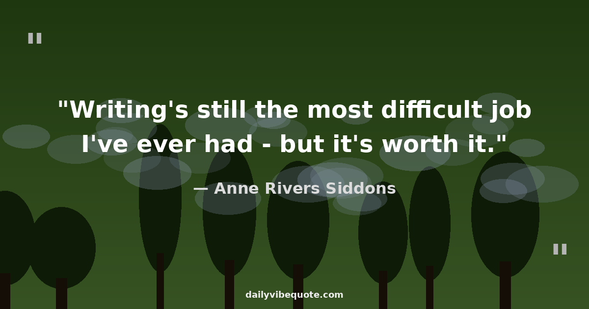 "Writing's still the most difficult job I've ever had - but it's worth it."