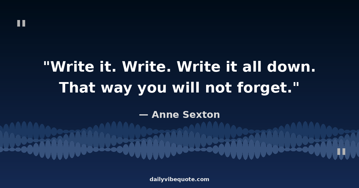 "Write it. Write. Write it all down. That way you will not forget."