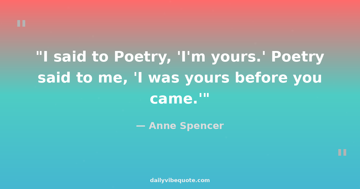 "I said to Poetry, 'I'm yours.' Poetry said to me, 'I was yours before you came.'"