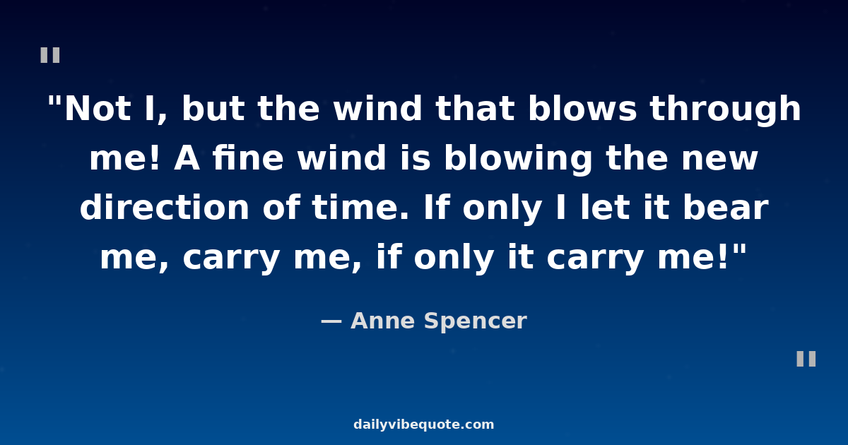 "Not I, but the wind that blows through me! A fine wind is blowing the new direction of time. If only I let it bear me, carry me, if only it carry me!"