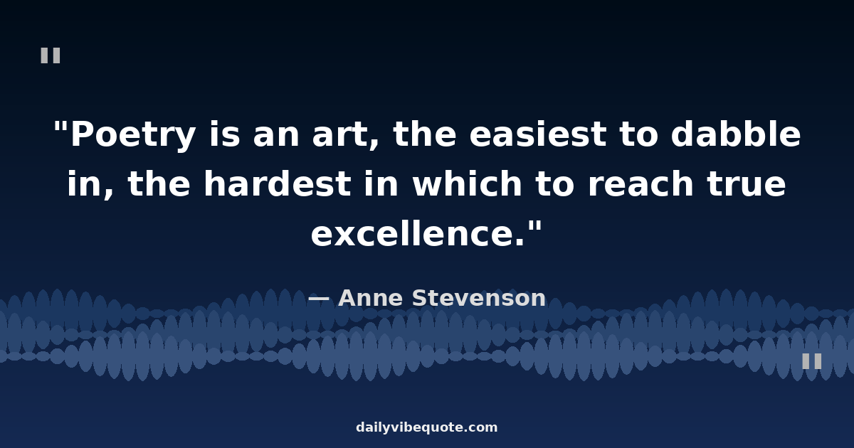 Anne Stevenson (1933-2020) was a British-American poet and writer known for her elegant and thought-provoking poems. She was born in England and later moved to the United States, where she continued to produce works that explored themes of identity, nature, and relationships. Stevenson's poetry is characterized by its clarity, depth, and lyrical beauty, earning her critical acclaim and a dedicated readership.