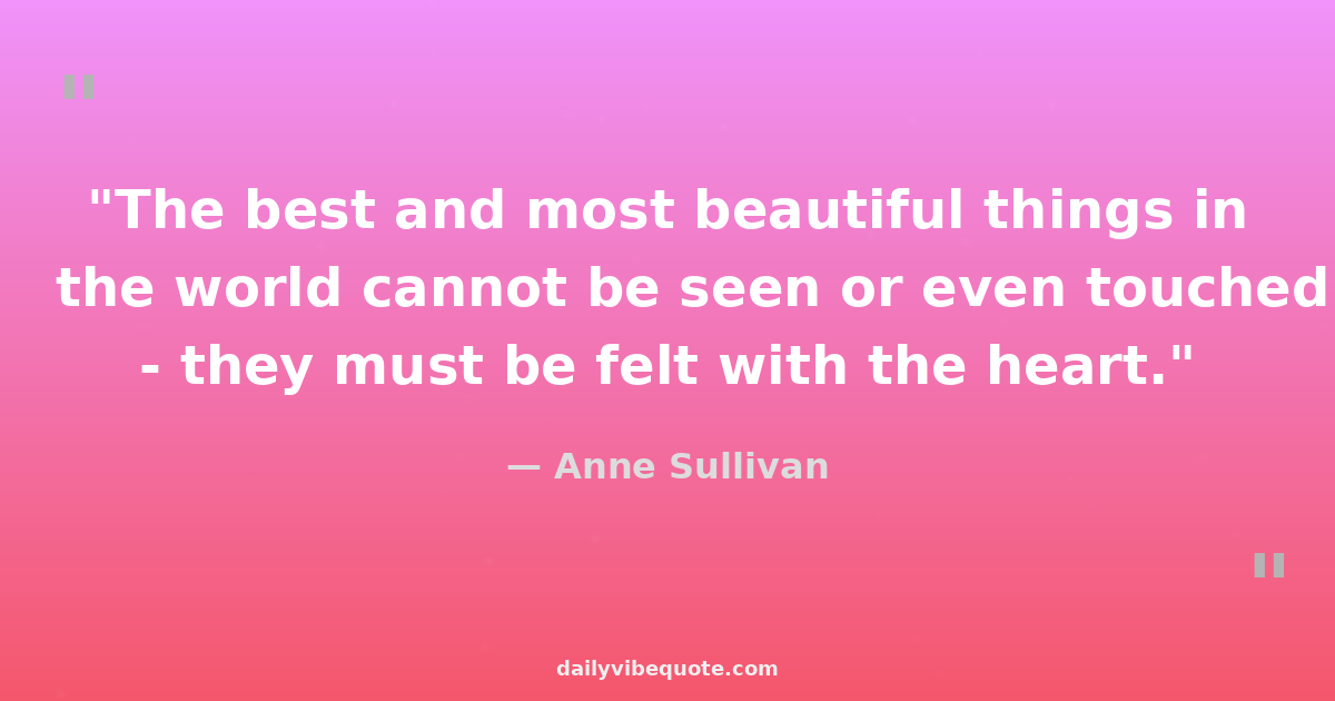 "The best and most beautiful things in the world cannot be seen or even touched - they must be felt with the heart."