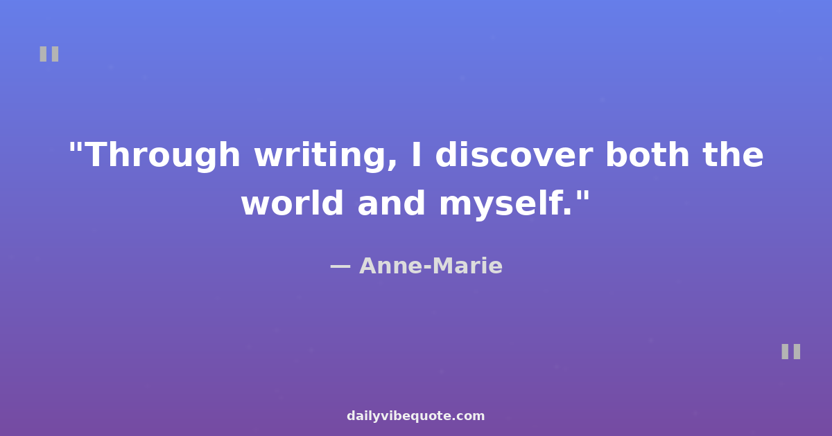 "Through writing, I discover both the world and myself."