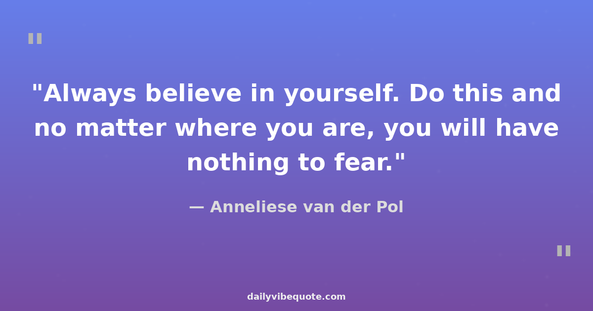 "Always believe in yourself. Do this and no matter where you are, you will have nothing to fear."