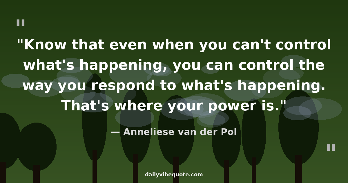 "Know that even when you can't control what's happening, you can control the way you respond to what's happening. That's where your power is."