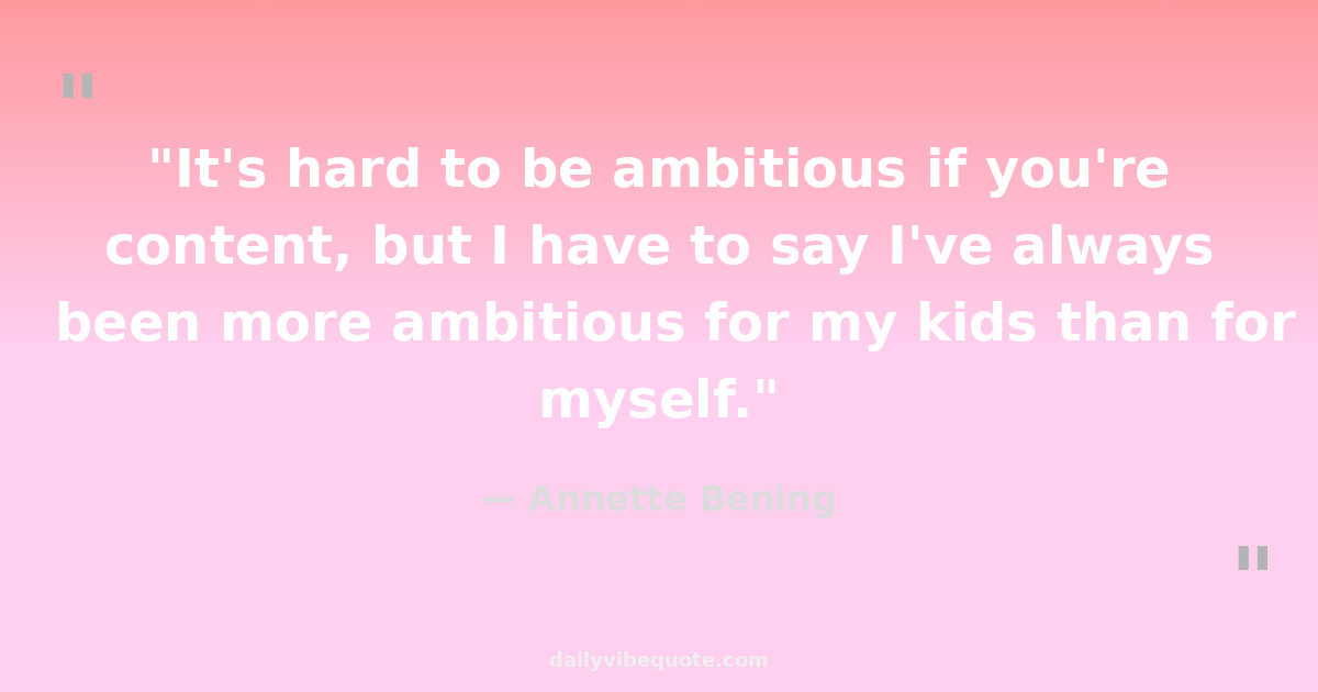 "It's hard to be ambitious if you're content, but I have to say I've always been more ambitious for my kids than for myself."