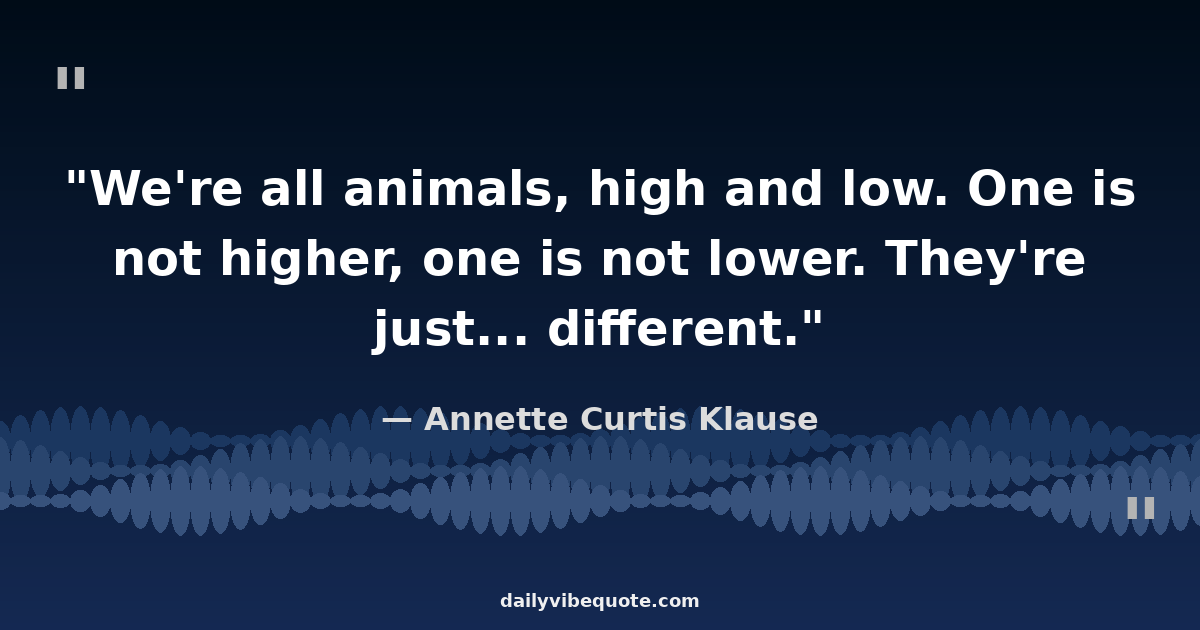 "We're all animals, high and low. One is not higher, one is not lower. They're just... different."