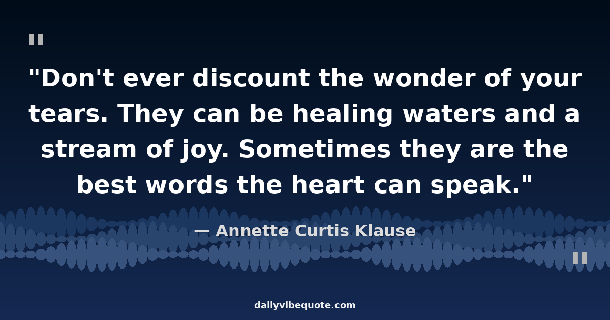 "Don't ever discount the wonder of your tears. They can be healing waters and a stream of joy. Sometimes they are the best words the heart can speak."