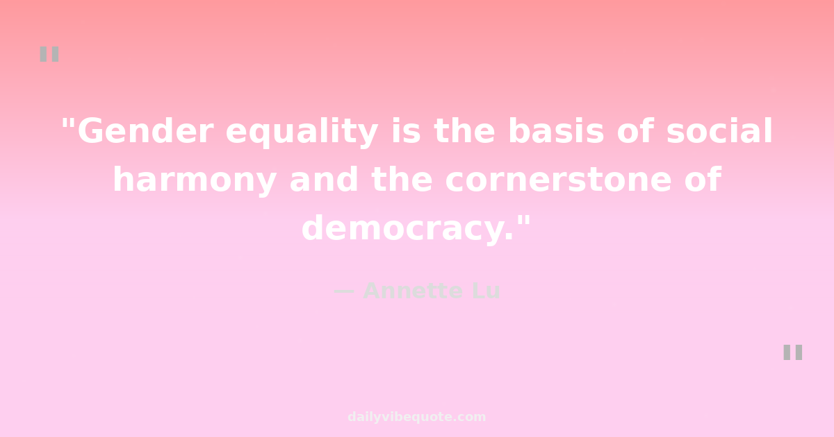 "Gender equality is the basis of social harmony and the cornerstone of democracy."