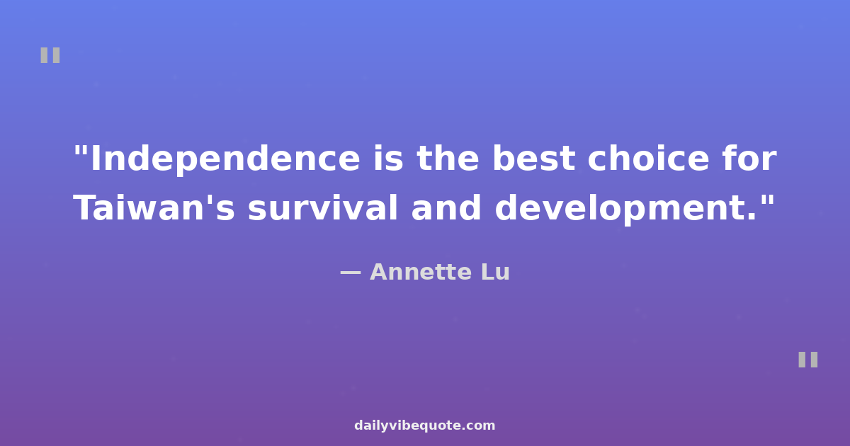 Annette Lu Hsiu-lien is a Taiwanese politician who served as the Vice President of Taiwan from 2000 to 2008 under President Chen Shui-bian. Prior to her vice presidency, Lu had a successful career as a human rights lawyer and feminist advocate, fighting for gender equality and social justice. She was known for her active involvement in Taiwan's democracy movement and her efforts to promote Taiwan's independence.