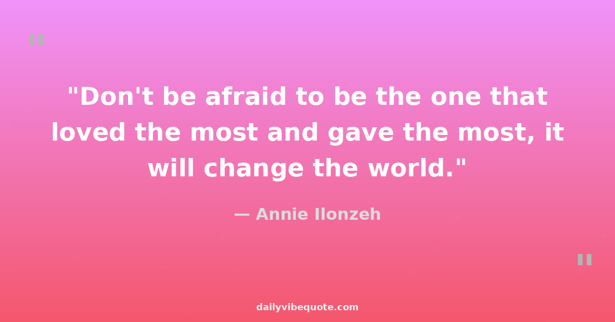 "Don't be afraid to be the one that loved the most and gave the most, it will change the world."