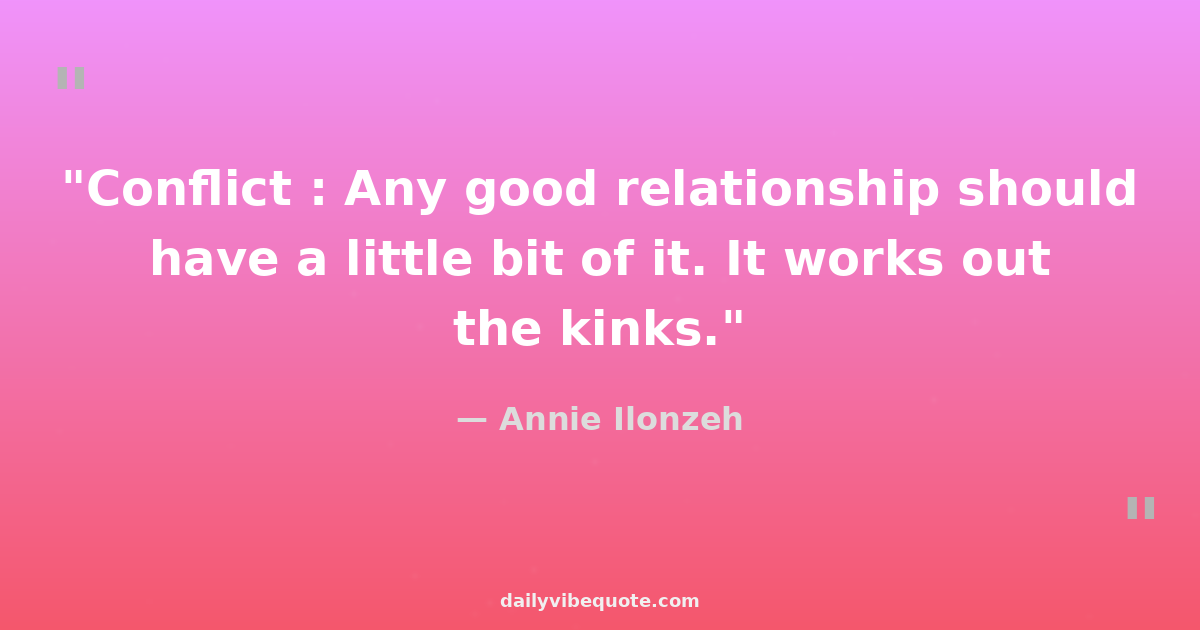"Conflict : Any good relationship should have a little bit of it. It works out the kinks."