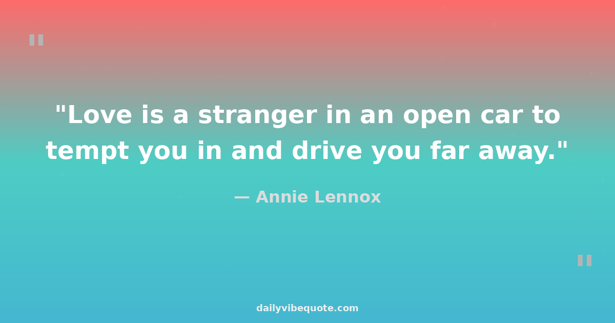 "Love is a stranger in an open car to tempt you in and drive you far away."