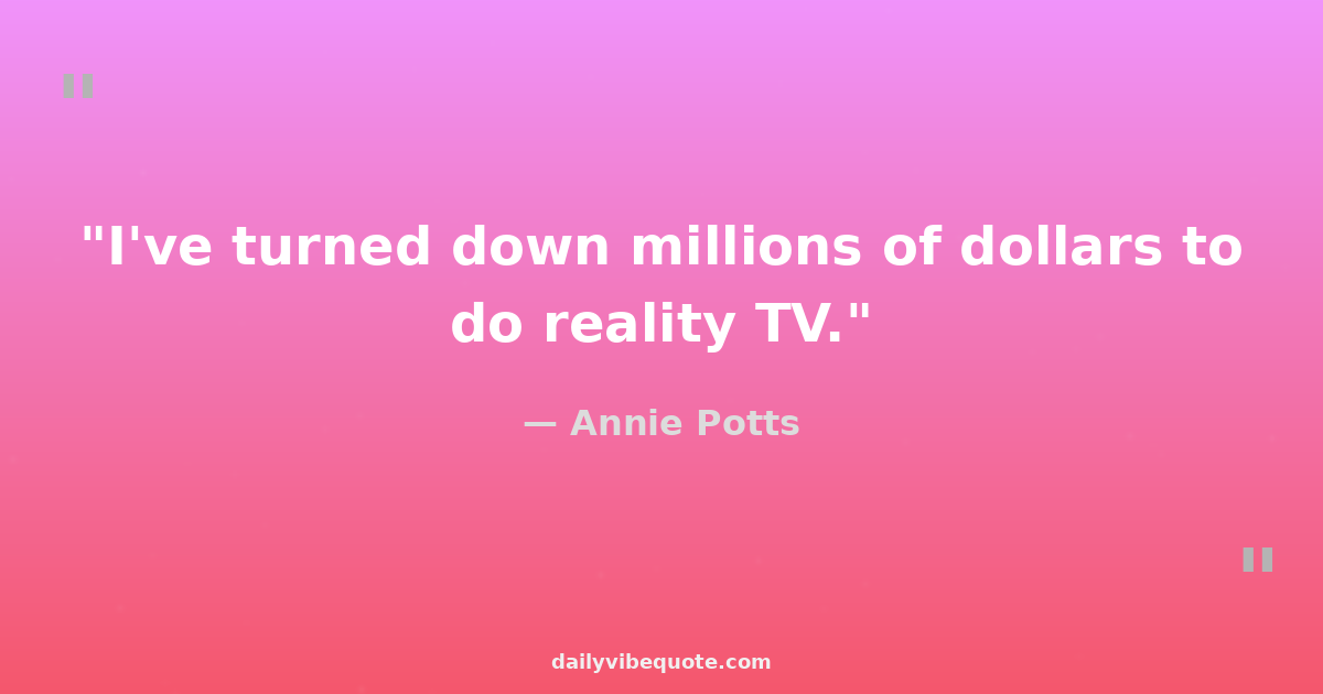 "I've turned down millions of dollars to do reality TV."