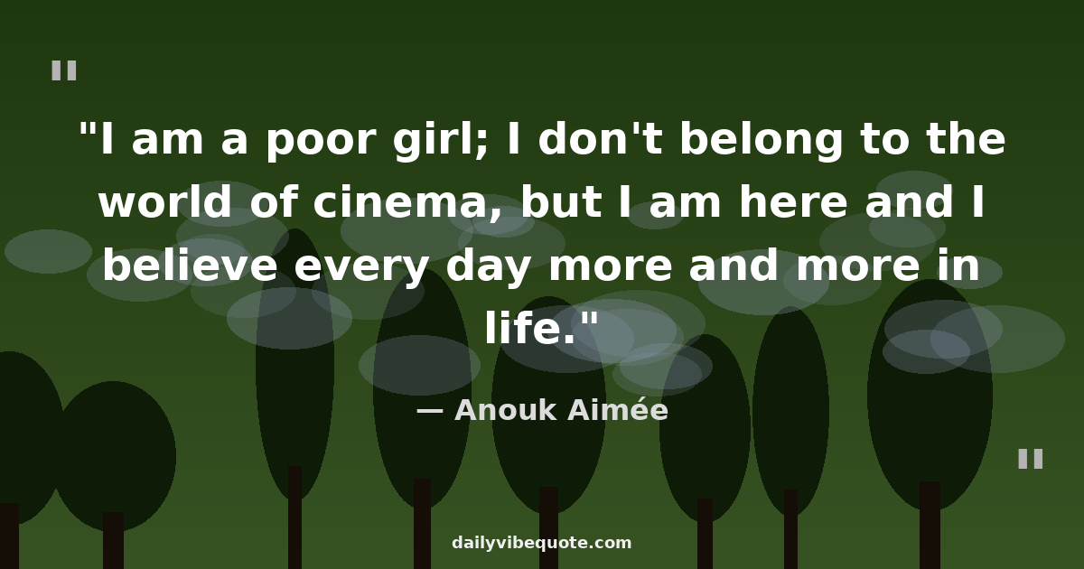 "I am a poor girl; I don't belong to the world of cinema, but I am here and I believe every day more and more in life."