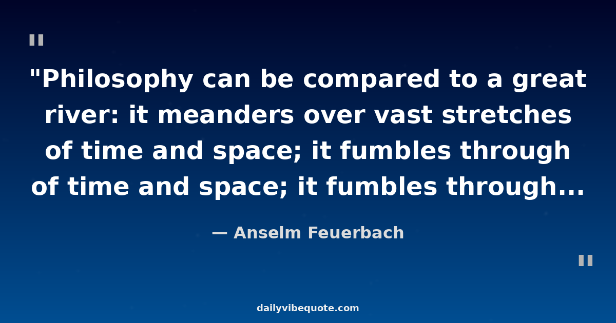 "Philosophy can be compared to a great river: it meanders over vast stretches of time and space; it fumbles through the dark forests of uncertain knowledge; it accumulates, then disperses the gravel and sands of facts and theories."
