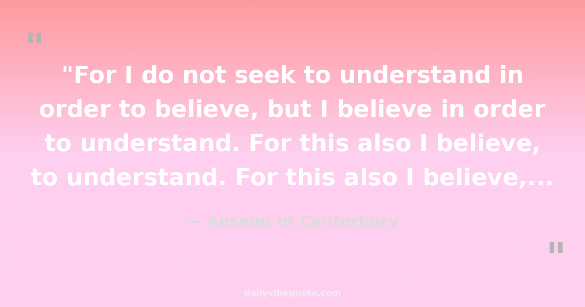 "For I do not seek to understand in order to believe, but I believe in order to understand. For this also I believe, that unless I believed, I should not understand."
