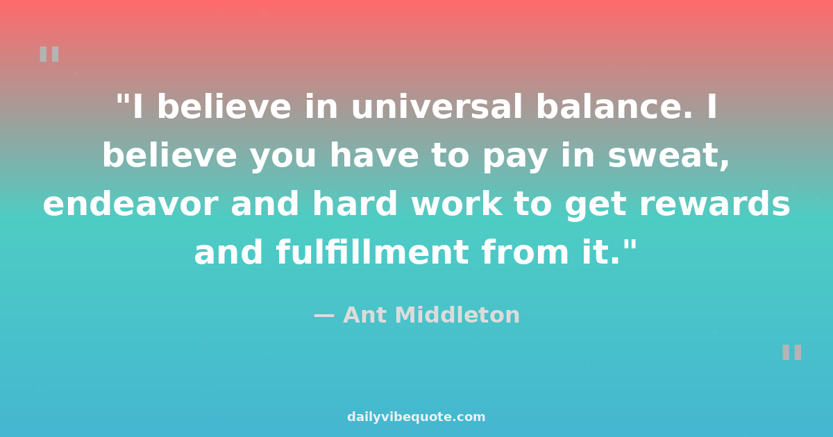 "I believe in universal balance. I believe you have to pay in sweat, endeavor and hard work to get rewards and fulfillment from it."