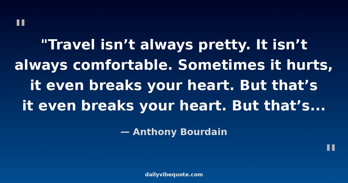 "Travel isn’t always pretty. It isn’t always comfortable. Sometimes it hurts, it even breaks your heart. But that’s okay. The journey changes you; it should change you."