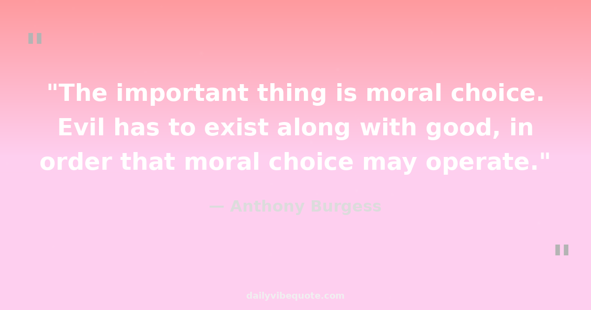 "The important thing is moral choice. Evil has to exist along with good, in order that moral choice may operate."