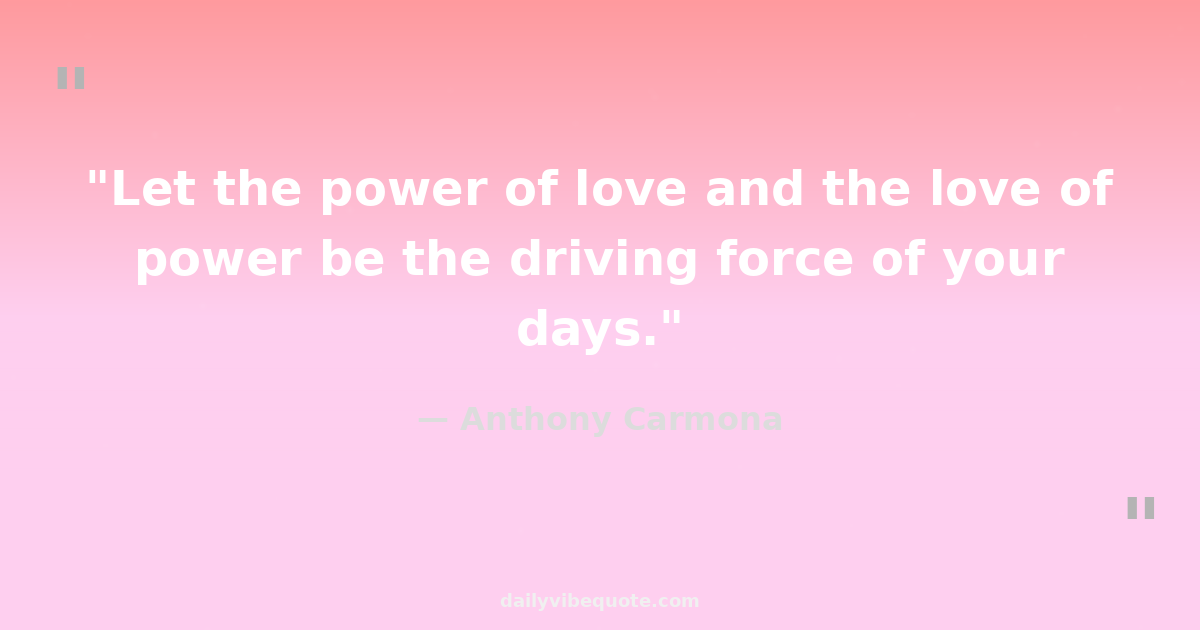 "Let the power of love and the love of power be the driving force of your days."