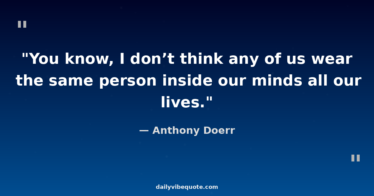 "You know, I don’t think any of us wear the same person inside our minds all our lives."