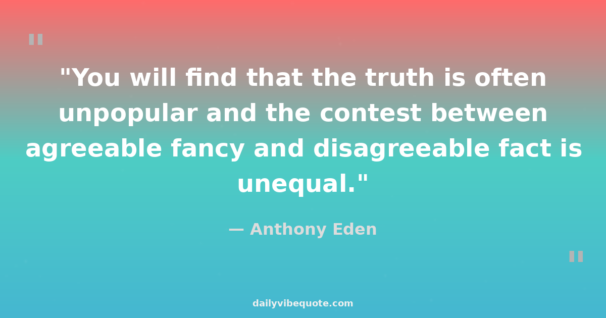 "You will find that the truth is often unpopular and the contest between agreeable fancy and disagreeable fact is unequal."