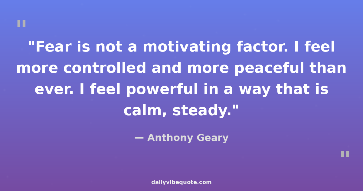 "Fear is not a motivating factor. I feel more controlled and more peaceful than ever. I feel powerful in a way that is calm, steady."