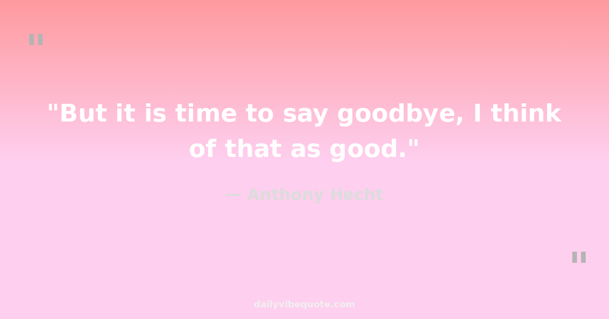 "But it is time to say goodbye, I think of that as good."