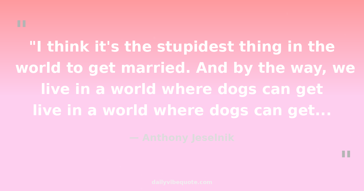 "I think it's the stupidest thing in the world to get married. And by the way, we live in a world where dogs can get married. That's ridiculous. They can't even say 'I do.'"