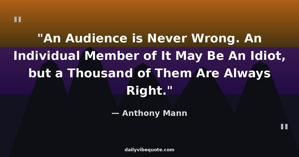 "An Audience is Never Wrong. An Individual Member of It May Be An Idiot, but a Thousand of Them Are Always Right."