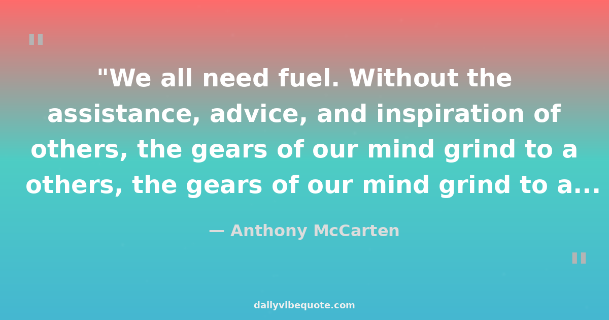 "We all need fuel. Without the assistance, advice, and inspiration of others, the gears of our mind grind to a halt, and we're stranded on the road to nowhere."