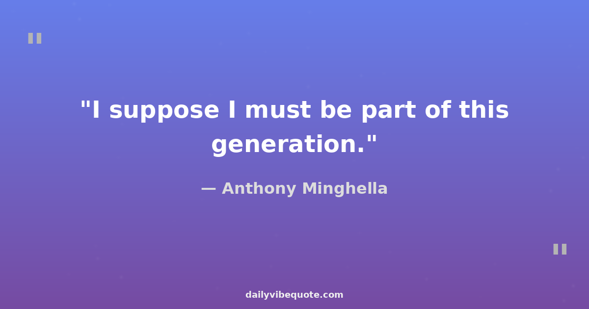 "I suppose I must be part of this generation."