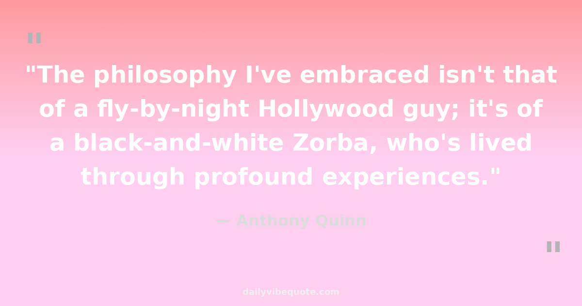 "The philosophy I've embraced isn't that of a fly-by-night Hollywood guy; it's of a black-and-white Zorba, who's lived through profound experiences."