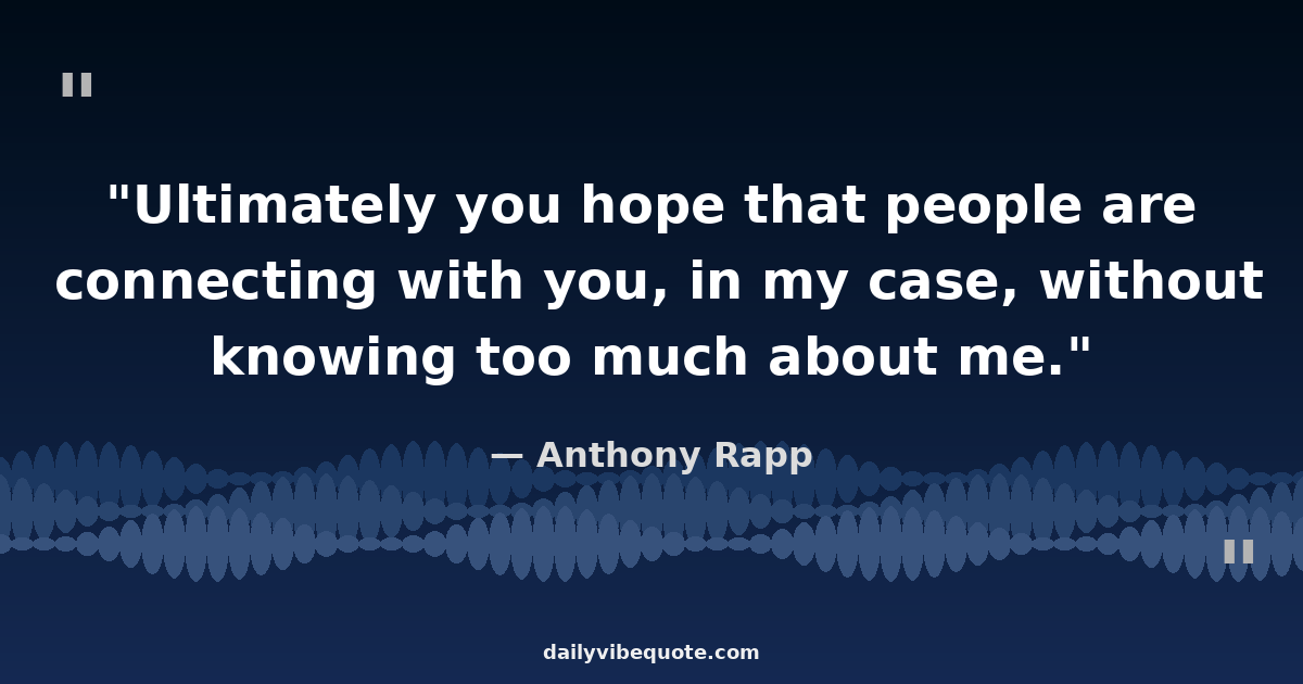 "Ultimately you hope that people are connecting with you, in my case, without knowing too much about me."