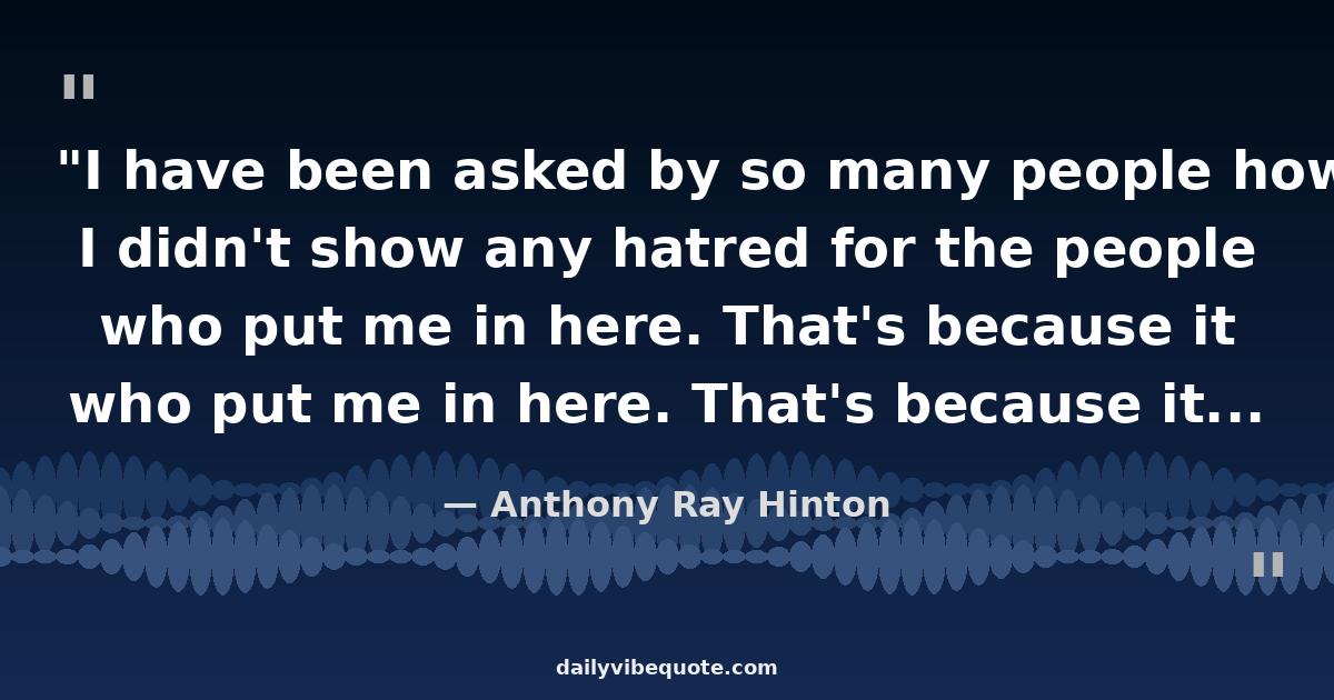 "I have been asked by so many people how I didn't show any hatred for the people who put me in here. That's because it would be impossible for me to live out here in the free world with hatred."