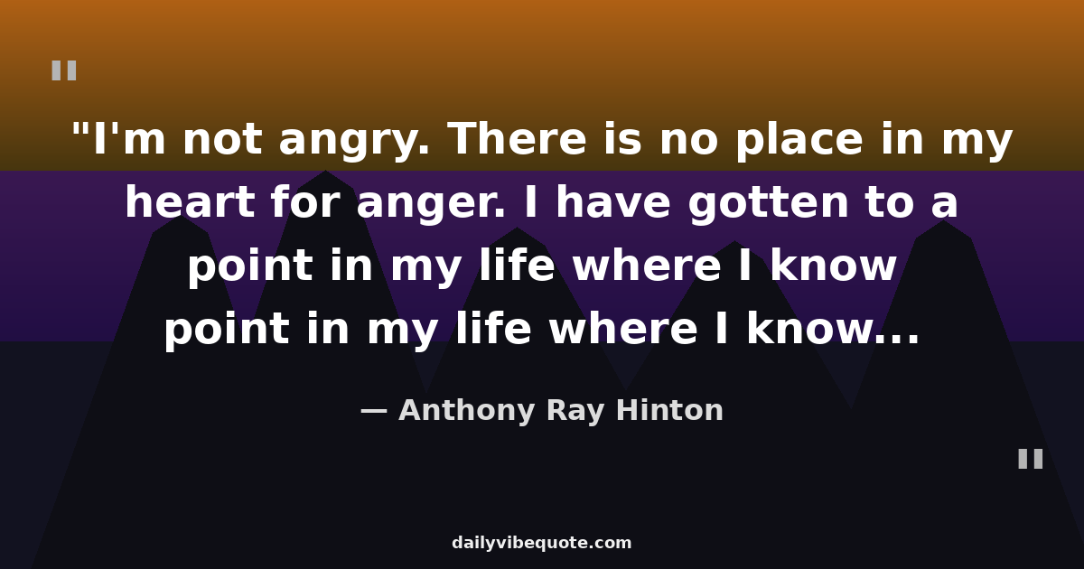 "I'm not angry. There is no place in my heart for anger. I have gotten to a point in my life where I know forgiveness is the only path I can take."