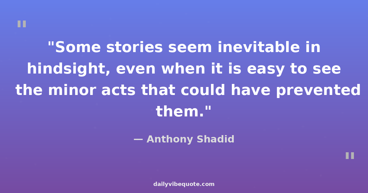 "Some stories seem inevitable in hindsight, even when it is easy to see the minor acts that could have prevented them."