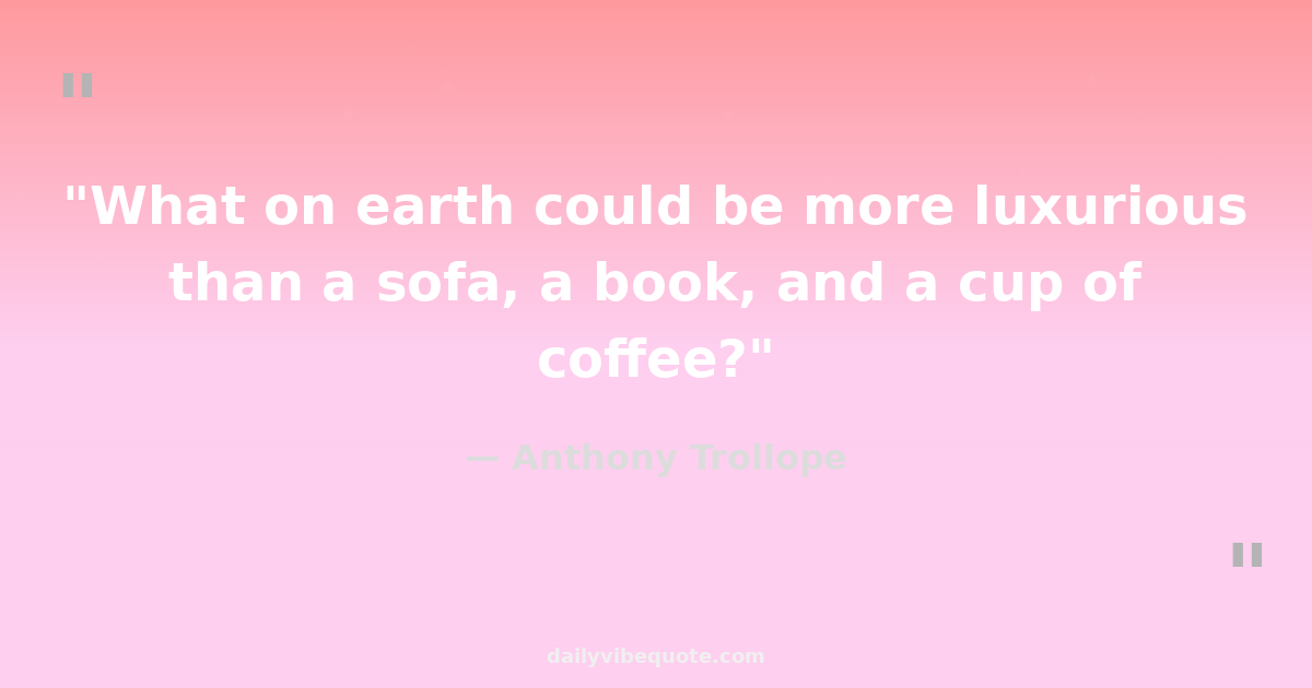 "What on earth could be more luxurious than a sofa, a book, and a cup of coffee?"