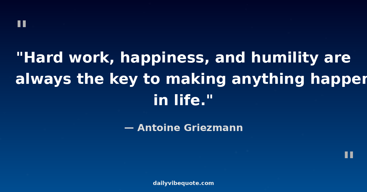 "Hard work, happiness, and humility are always the key to making anything happen in life."