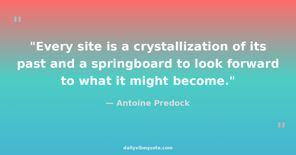 "Every site is a crystallization of its past and a springboard to look forward to what it might become."