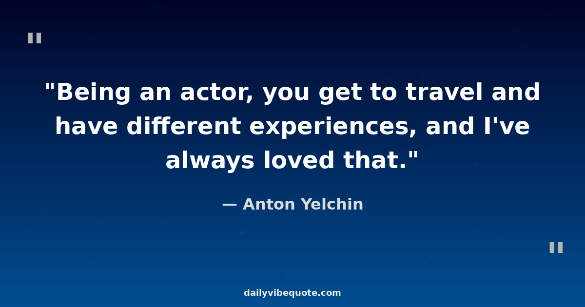 "Being an actor, you get to travel and have different experiences, and I've always loved that."