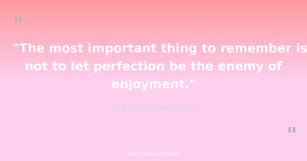 "The most important thing to remember is not to let perfection be the enemy of enjoyment."