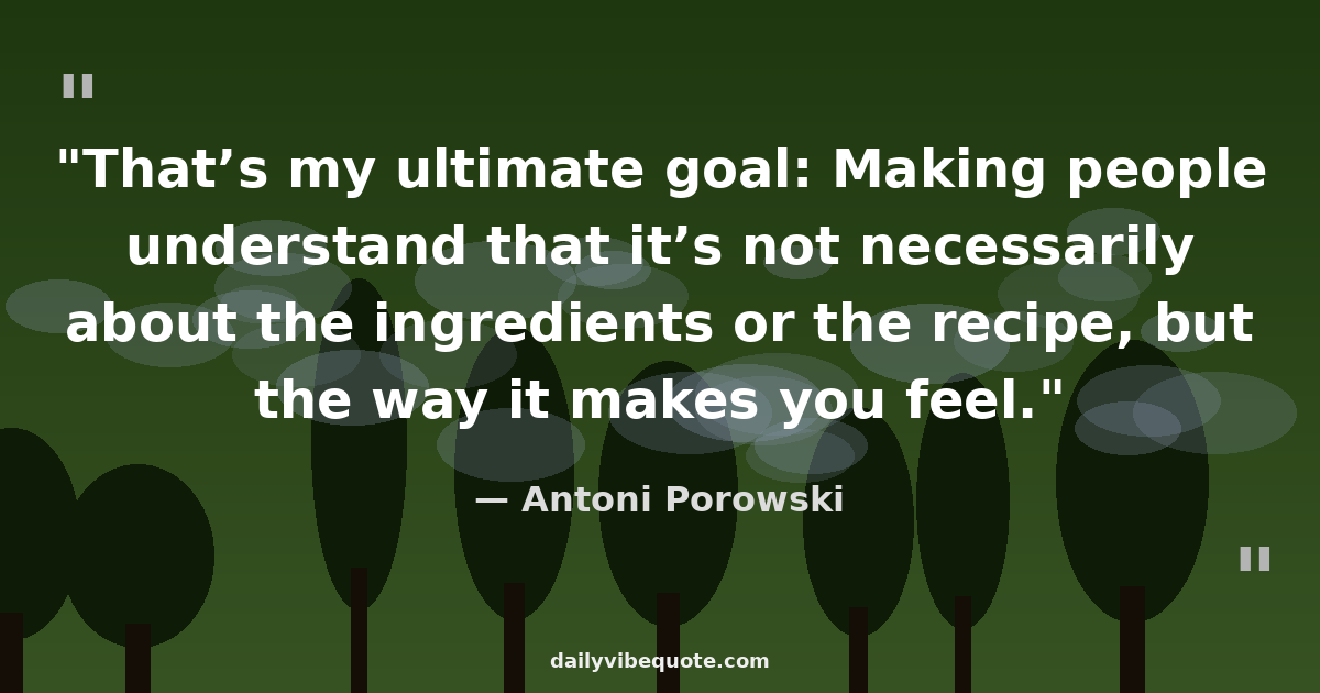 "That’s my ultimate goal: Making people understand that it’s not necessarily about the ingredients or the recipe, but the way it makes you feel."